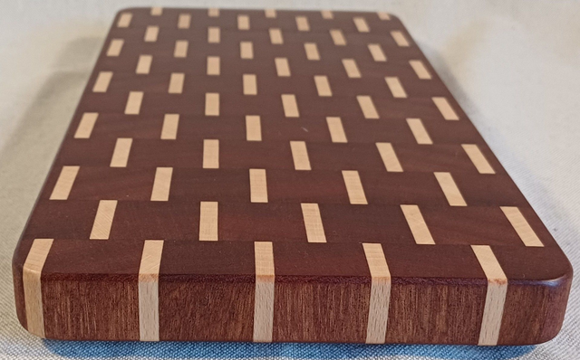Petite planche en bois de bout sapelli et hêtre